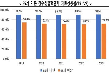 특히 65세 이상 결핵환자의 치료성공률은 71.5%로 65세 미만 환자의 90.5%보다 19%포인트나 낮아 개선이 시급한 상황이다.