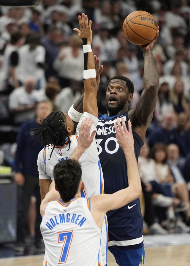 랜들은 지난해 10월 단행된 칼 앤서니 타운스 트레이드 때 뉴욕 닉스를 떠나 미네소타에 둥지를 틀었다. 이적 후 첫 시즌이었던 2024~25시즌에는 69경기에 출전, 평균 20.8점 7.9리바운드 5.2어시스트를 기록했다. CBS스포츠는 '지난 시즌 경기당 평균 18점 7리바운드 4어시스트를 기록한 9명의 선수 중 한 명이었다'며 '플레이오프에서 랜들은 15경기 중 11경기에서 22점 이상 기록했다. 골든스테이트 워리어스와의 서부 콘퍼런스 2라운드에선 구단 프랜차이즈 역사상 두 번째로 포스트시즌 트리플 더블(24점 10리바운드 12어시스트)을 달성한 선수가 됐다'라고 활약을 조명했다.