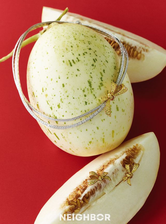 Graff 총 10.45캐럿의 화이트 다이아몬드와 총 3.29캐럿의 옐로 다이아몬드를 세팅한 틸다의 보우 컬렉션 네크리스, 사랑스러운 리본 형태를 따라 총 3.56캐럿의 옐로 다이아몬드를 가득 채운 틸다의 보우 컬렉션 이어링 모두 가격 미정.