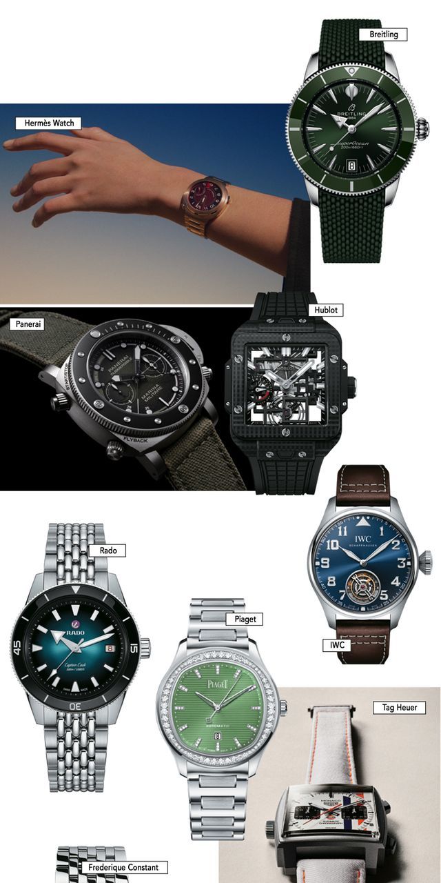 메종을 대표하는 워치 컬렉션 ‘피아제 폴로’에 화사한 그린 다이얼의 신제품을 추가한다. 베젤을 따라 약 0.97캐럿에 달하는 브릴리언트 컷 다이아몬드 60개를 세팅하고, 아워 마커에 약 0.08캐럿의 브릴리언트 컷 다이아몬드 36개를 세팅해 우아한 분위기를 자아낸다.