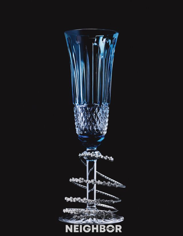 Hermès 투명한 스카이블루 컬러 샴페인 잔 가격 미정.