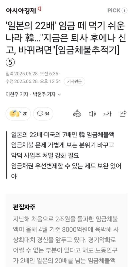 한국 임금체불 일본의 22배
