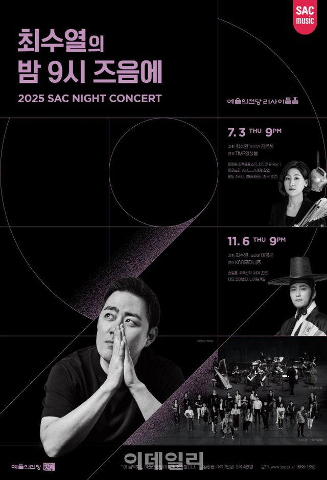 ‘최수열의 밤 9시 즈음에’는 새로운 감각의 현대음악을 제시하기 위해 예술의전당이 2023년 처음 기획한 시리즈다. 밤 9시라는 특별한 시간대에 맞춰 일상의 리듬을 벗어난 청취 경험을 제안하는 무대다.