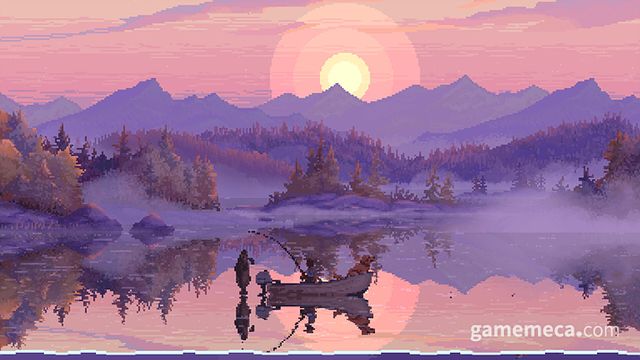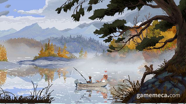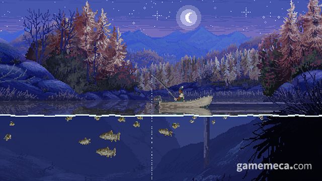 캐스트 앤 칠에는 명확한 목표가 없어, 플레이어가 원하는 만큼 낚시를 즐기면 됩니다. 물론 낚은 물고기를 기록하는 도감이 있고, 지역과 크기별로 이들을 수집하는 재미는 있습니다. 또한 전반적으로 물과 산이 아름다운 픽셀로 묘사됐습니다. 2D처럼 보이지만, 실제로는 물 아래로 내려가는 애니메이션이나 이동 화면에서 입체감도 두드러지죠. 간혹 심심하다면 함께 낚시하는 골든 리트리버를 쓰다듬고 하트를 띄울 수도 있습니다.