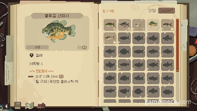 ▲ 물고기 백과사전, 잡은 물고기를 기록 (사진출처: 스팀)