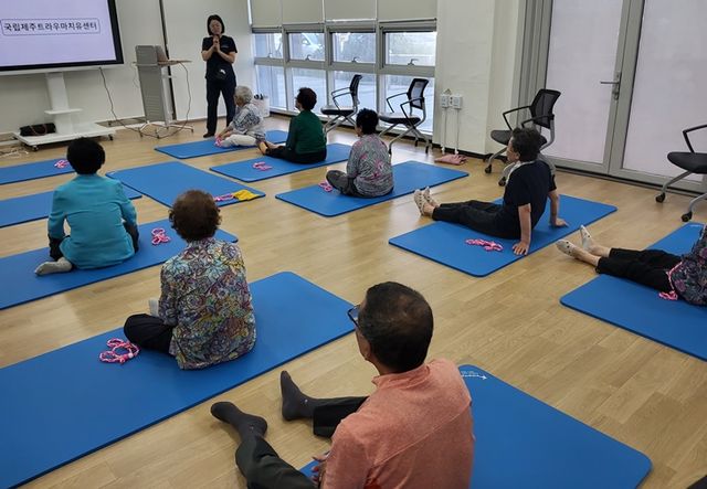 국립제주트라우마치유센터에서 4·3유족 등을 위한 운동 치유 프로그램이 진행되고 있다. 진선희기자