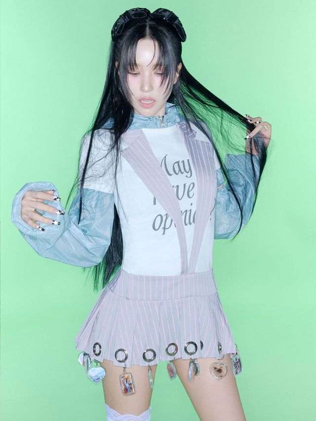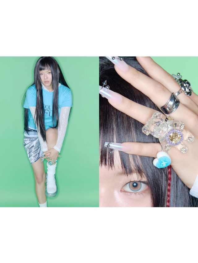 멤버들의 손끝도 빼놓을 수 없는 포인트입니다. 아홉 명 모두 '퀸 모멘트'를 완성한 롱 네일아트 디자인을 선보였는데요. 나연은 베이비핑크와 블루 네일에 자신의 이니셜 N, Y를 붙였습니다. 정연은 연장 손톱에 메탈 피어싱을 달아 대담함을 더했고요. 앨범 제목을 새긴 모모, 순정만화 눈을 그린 채영, 송곳처럼 뾰족한 핑크 네일을 뽐낸 쯔위까지. 하지만 가장 놀라운 디자인은 최초로 네일 아래에 청록색 피츠를 붙인 사나의 네일이 아닐까요?