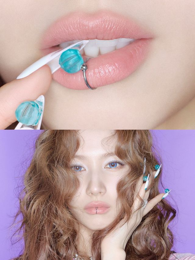 마스카라는 이제 단순히 속눈썹을 길게 연출하는 데서 그치지 않고, 색감으로 개성을 더하는 메이크업 도구가 됐습니다. 나연은 파란 렌즈와 잘 어울리는 블루 마스카라를 위아래로 꼼꼼히 발라 메이크업 튜토리얼의 좋은 예시를 보여줬습니다. 모모는 속눈썹 끝을 화이트로 마무리해 몽환적인 무드를, 미나는 파란 렌즈에 핑크 마스카라로 장난스러운 분위기를 완성했네요.