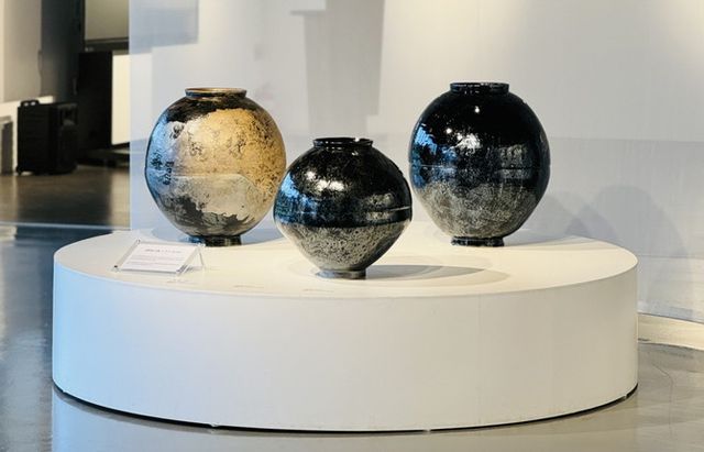 경기 남양주시 '더 나르떼'에 전시된 흑자 달항아리. ⓒ 빙그레