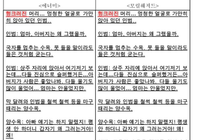 그러면서 “시나리오 전문가가 아니더라도, ‘소주전쟁’이 박현우의 <에너미> 에서 나온 것이라는 점은 두 시나리오를 읽어보는 것만으로 누구나 쉽게 알 수 있다. 심지어 오타까지 동일하다”라고 덧붙였다. 에너미>