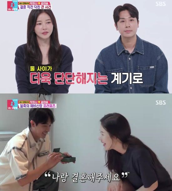 그런가 하면 이날 김태술은 프러포즈 이벤트를 준비했다. 진심이 담겼지만 다소 서툰 프러포즈에 박하나는 "감동적인 프러포즈를 생각했는데…또 해줄 거지?"라고 했고, 혼수나 결혼 예물에도 효율성을 따지며 계속해서 박하나와 '동상이몽'을 보였던 김태술은 "근데 두 번 하는 건 또 효율적이지 않으니까"라고 받아쳐 웃음을 자아냈다.