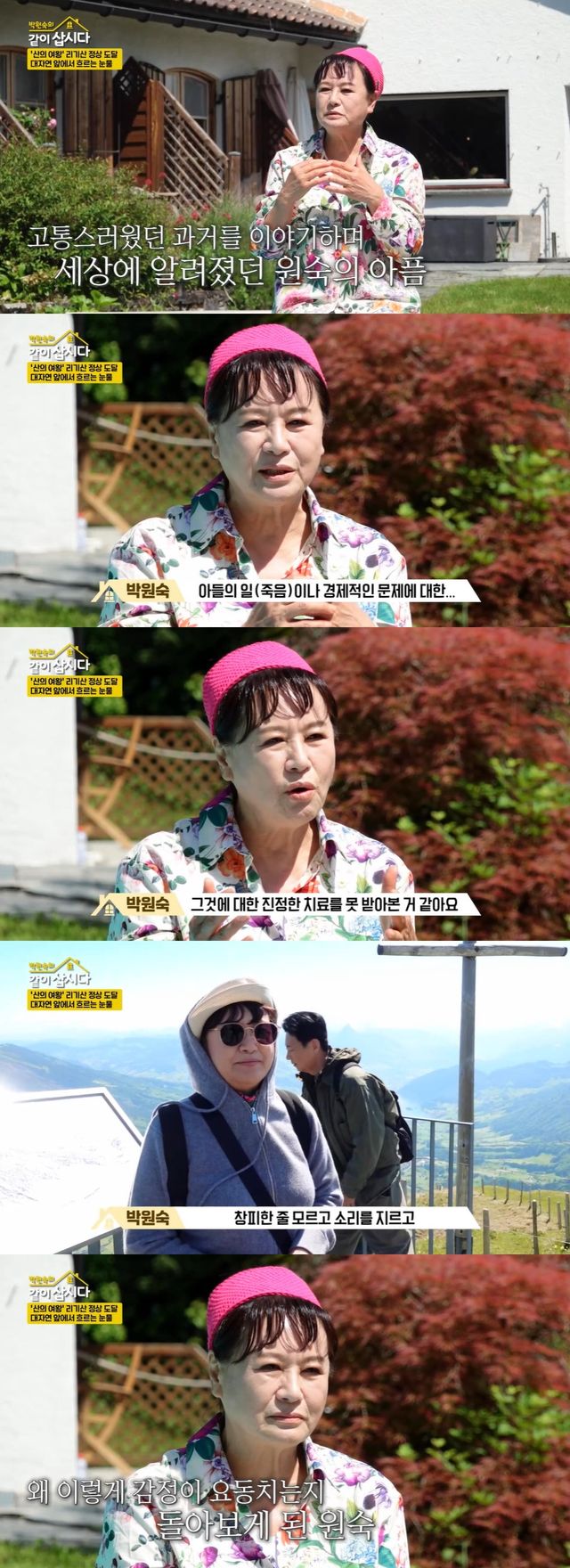 특히 박원숙은 "혼자 잘 때도 생각하는데 내 아픔이나 슬픔은 상황을 설명하려고 까발린 거였는데, 실제로 아들의 일이나 경제적인 문제에 대한 위로 진정한 치료를 못 받아본 것 같다"라고 털어놨다.