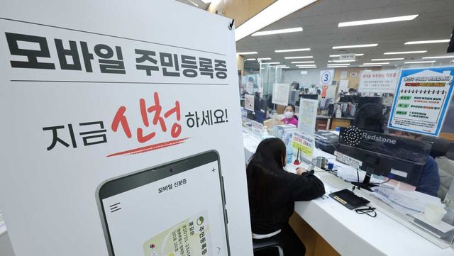 서울 용산구 남영동주민센터에 모바일 주민등록증 발급 안내문이 게시되어 있다. / 뉴스1