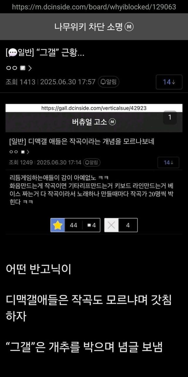 '고소'갤에서 법얘기하면 차단