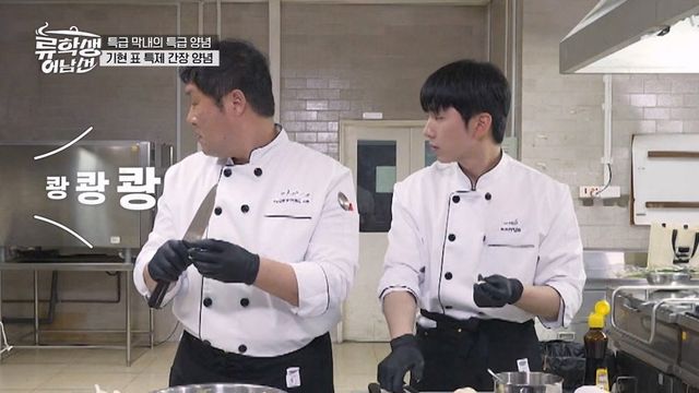 요리 도중, 생마늘 까기에 집중한 류수영은 마늘을 맨손으로 내려쳐 ‘주방장군’의 명성다운 파워를 보였다. 이에 기현은 “형 약간…‘지킬 앤 하이드’ 같다”며 평했다. 성공적인 맛에 류수영과 기현은 기쁨의 퍼포먼스를 선보였고, 처음 보는 광경에 윤경호는 “내가 뭘 본 거지…”라고 어리둥절해 하면서도 금방 퍼포먼스에 합류했다.