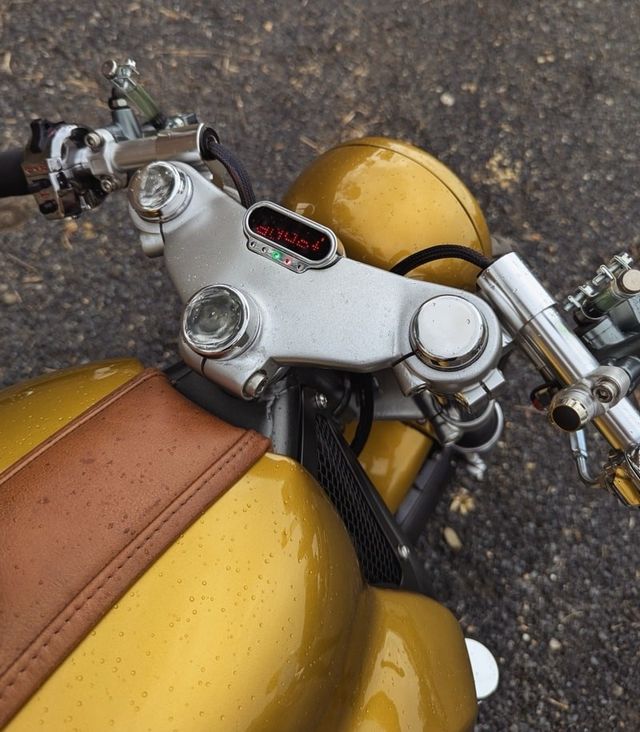 프런트에는 맞춤형 펜더와 LED 헤드램프가, 후면에는 스윙암 고정 방식의 번호판 거치대와 소형 LED 램프가 적용됐다. 계기판은 디지털 방식의 ‘모토가젯 미니’로 교체됐고, 핸들바는 클립온 타입으로 조작계와 바엔드 미러가 결합돼 있다. 서스펜션은 ‘XXX 레이티드 서스펜션’이 손봤으며, 전기 시스템은 ‘팝뱅 클래식스’가 다시 설계했다.
