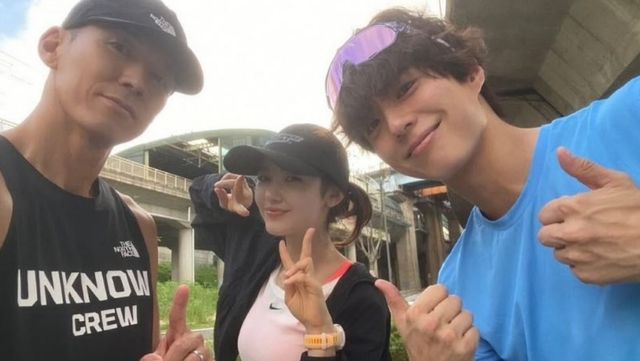 새벽 러닝을 함께한 가수 션, 다니엘, 배우 박보검의 모습. / 션 인스타그램
