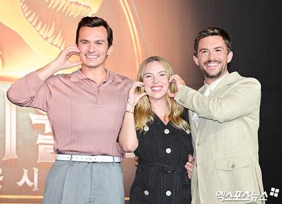 1일 서울 광화문 포시즌스호텔 그랜드볼룸에서 영화 '쥬라기 월드: 새로운 시작'(감독 가렛 에드워즈) 내한 기자간담회가 열렸다. 이 자리에는 배우 스칼렛 요한슨, 조나단 베일리, 루퍼트 프렌드와 가렛 에드워즈 감독이 참석했다.