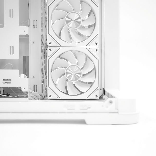 시선을 전원부와 스토리지로 옮겨보자. 독립된 챔버에 배치돼 발열 원인을 무대 뒤로 격리하는 구조다. 메인보드와 등을 마주한 형태로 상단에 자리 잡은 파워 서플라이는 냉각 공기를 전용 통로로 끌어들이고, 최대 160 mm 공랭 타워를 품을 수 있는 주 챔버는 그래픽카드·라디에이터와 엉키지 않는 여유를 확보했다. 결과적으로 UD50C는 곡선으로 유리를 휘어 시선을 붙잡고, 숨은 통풍로와 모듈식 구조로 열기를 흐르게 하며, ‘보여 주는 재미’와 ‘식혀 주는 책임’을 한 몸에 담아낸 형국이다.