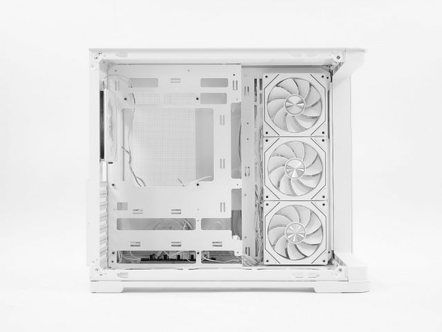 첫눈에 보이는 건 270° 풀커브드 강화유리다. 하지만 이건 도발에 불과하다. “안에 뭐 있나 구경해 봐”라는 자신감, 딱 거기까지다. 그 뒤로는 모든 배선을 뒤로 숨겨 버린 BTF 설계, 여유를 우악스럽게 뽑아낸 내부 공간, 그리고 열을 위로 던져 버리는 듀얼챔버로 구현한 파워 위치가 기다린다. 스펙표를 꿰고 있는 매니아라면 벌써 손 끝이 근질거릴 테지만, 진짜 이야기는 전원을 켜고 나서 시작된다.