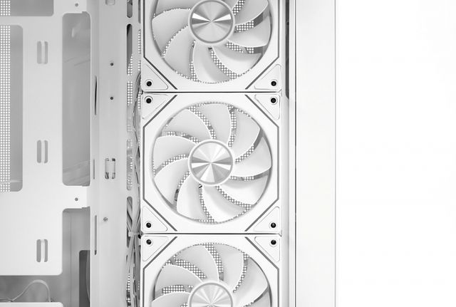 최대 360 mm 라디에이터를 올릴 수 있는 상단, 120mm × 3 리버스 ARGB 흡기 팬, 그리고 10포트 ARGB + PWM 허브가 조명과 풍량을 하나의 리듬으로 묶어 준다. 사용자는 메인보드 제조사가 제공하는 RGB 소프트웨어나 케이스 상단에 제공하는 물리적 버튼 한 번으로 빛을 제어할 수 있다. 하단 앰비언트 라이트까지 더해지니 케이스 전체가 하나의 ‘호흡하는 조형물’처럼 반응한다.