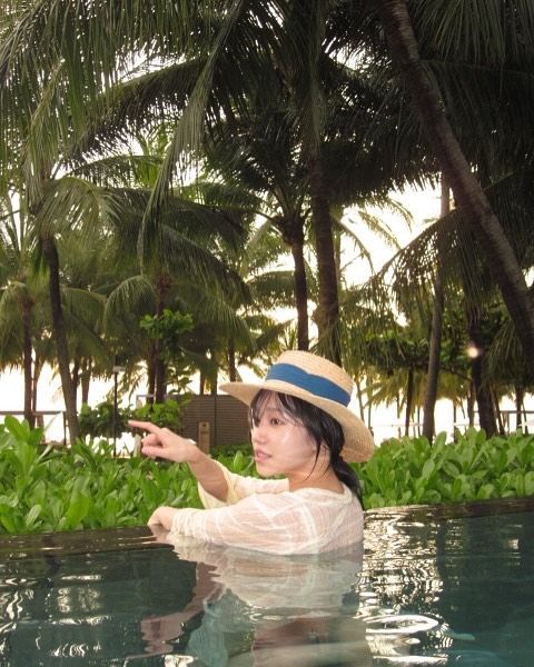 물놀이 갈 때도 모자는 필수죠. 조유리는 수영복엔 쨍한 남색 나일론 볼캡을, 그리고 휴양지 느낌이 물씬 나는 챙이 넓은 짚모자 이 두 모자를 골랐어요. 기능성과 스타일을 모두 챙긴 조유리의 모자 활용법. 옷 진짜 잘 입으려면 이런 센스가 필요한 것 같네요.
