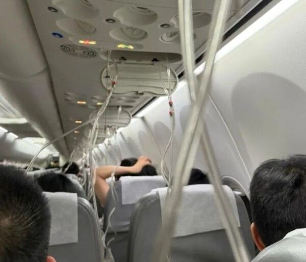 탑승객들이 올린 영상을 보면 모든 좌석에 산소마스크가 내려와 있고, 승무원들은 기내를 돌아다니며 안전띠, 마스크 착용 등을 안내하는 모습이다.