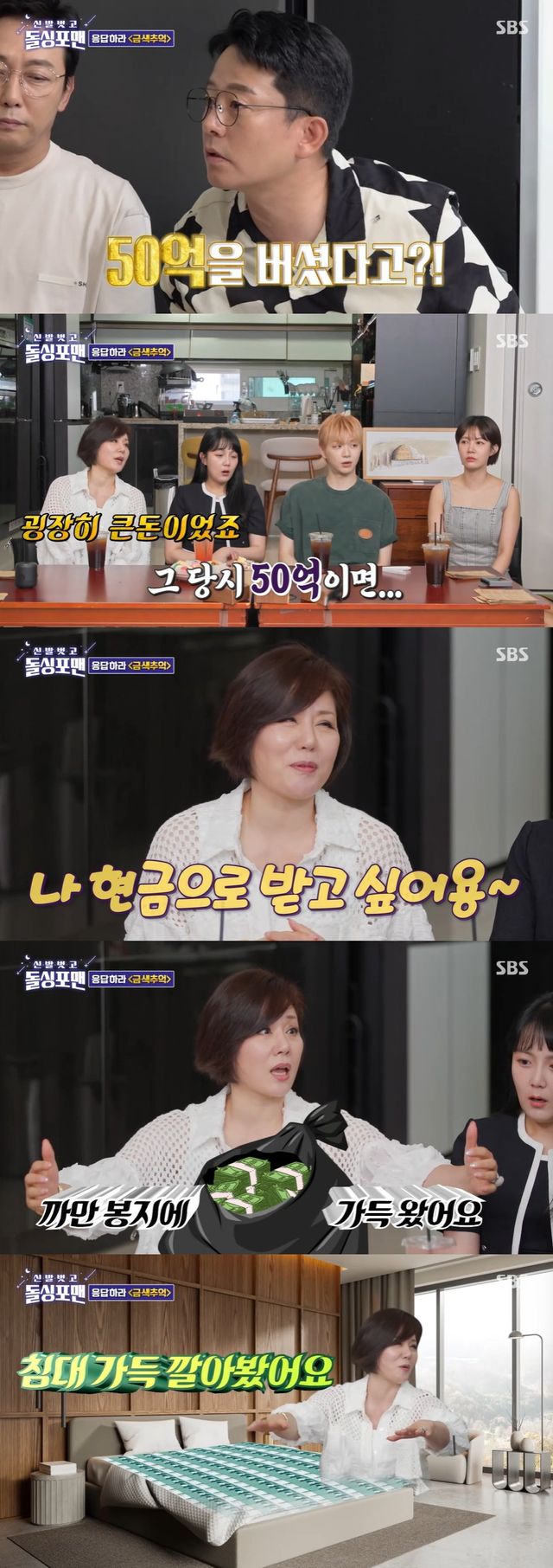 기분이 너무 좋았다던 한혜진은 "TV 보면 침대에 현금을 깔아놓지 않냐. 저도 깔아봤다. 너무 행복했다"며 당시 추억을 회상했다.
