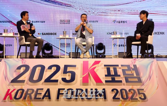 국내 최초 연예·스포츠 전문지 일간스포츠와 전통의 경제 주간지 이코노미스트가 공동 주최하는 2025 K포럼이 2일 서울 용산구 서울드래곤시티 그랜드볼룸에서 열렸다. 이날 연상호 감독과 강타는 ‘대한민국의 서사에 담긴 K-혼(魂)’이란 타이틀로 대담을 가졌다. 대담의 좌장은 박창식 한국국제문화교류진흥원 원장이 맡았다.