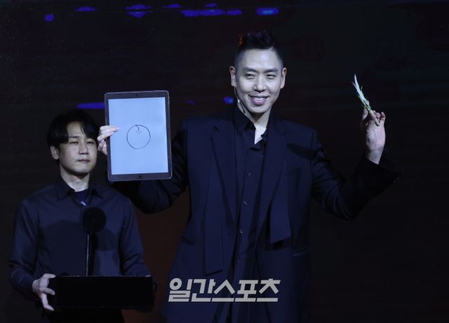 : K 콘텐츠 경계를 넘어 또 다른 가능성으로'라는 주제로 연사에 나섰다. 그는 이날 관점과 의심을 주제로 공연과 강연을 결합한 렉처 퍼포먼스를 펼쳤다. 그는 금기를 의심한 에덴의 사과, 패러다임을 의심한 폴 세잔의 사과, 평범을 의심한 아이작 뉴턴의 사과, 한계를 의심한 스티브 잡스의 사과를 공연으로 표현하면서 의심에서 창의성이 시작된다고 전했다.