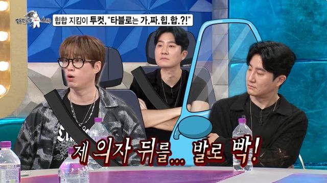 날선 분위기에 차까지 멈춘 뒤 언쟁을 이어간 두 사람. 타블로는 "투컷이 갑자기 제 의자 뒤를 발로 차면서 '나는 이런 가짜 힙합하고 싶지 않아'라고 하더라"고 폭로해 현장을 초토화시켰다.