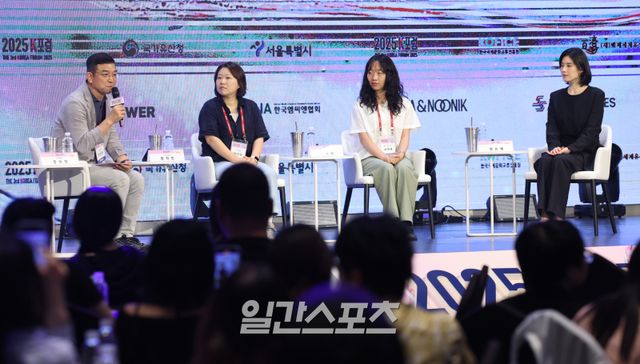 글로벌 1위를 기록 중인 애니메이션 ‘케이팝 데몬 헌터스’는 ‘2025 K포럼’에서도 뜨거운 화두였다. 이날 챕터1 ‘스토리 왓: 표현하는 모든 것이 K다’에서는 tvN 드라마 ‘정년이’ 정지인 감독과 서이레 작가, 주연배우 정은채가 참석해 웹툰이 드라마로 만들어지는 과정과 K콘텐츠의 파급 효과, 나아갈 방향에 대해 이야기를 나눴다. 이날 정지인 감독은 “‘케이팝 데몬 헌터스’를 두 번 봤다”고 말해 시선을 모았다. 서이레 작가 또한 작품 속 다양한 전통 이미지를 흥미롭게 봤다며 “우리 민족을 꿰뚫는 철학적인 게 무엇일까 생각해보게 됐다. 잘 만들어 둔 이미지에 담을 ‘한국적인 것’을 고민하는 중”이라고 밝혔다.