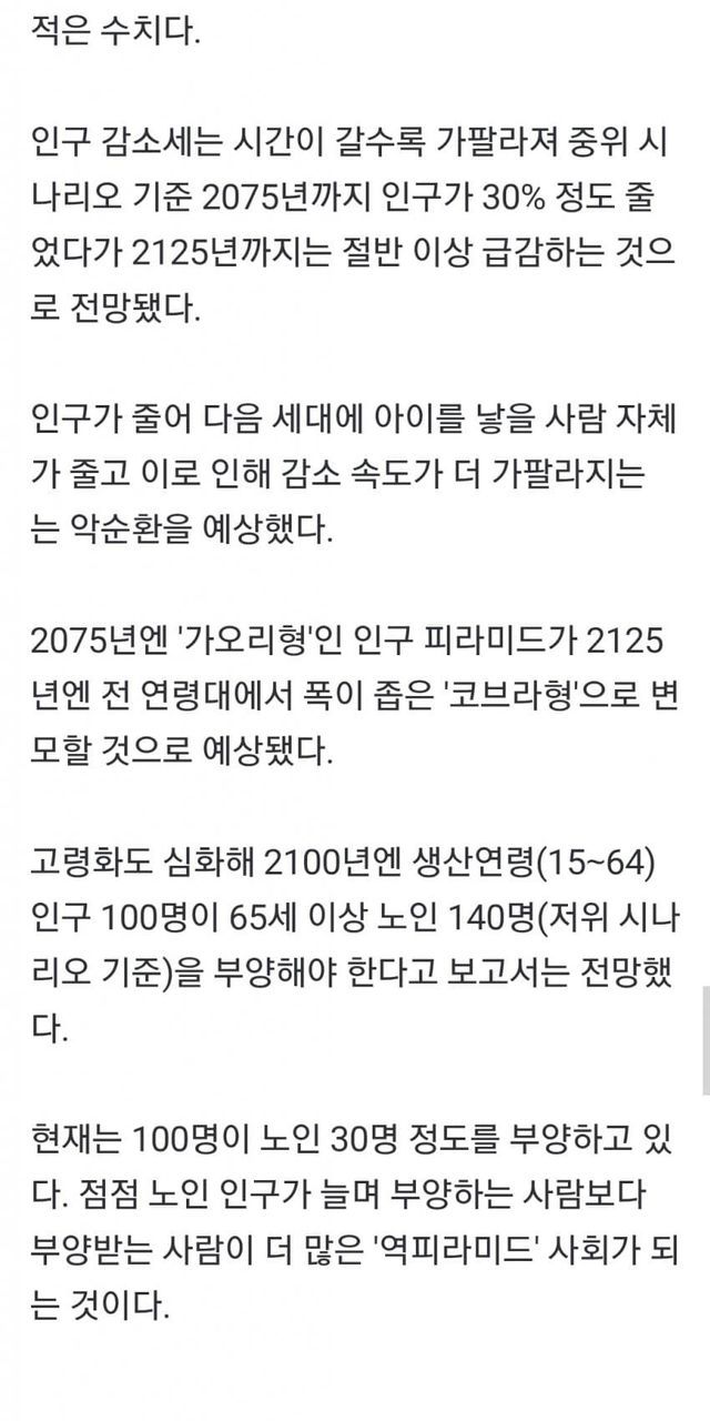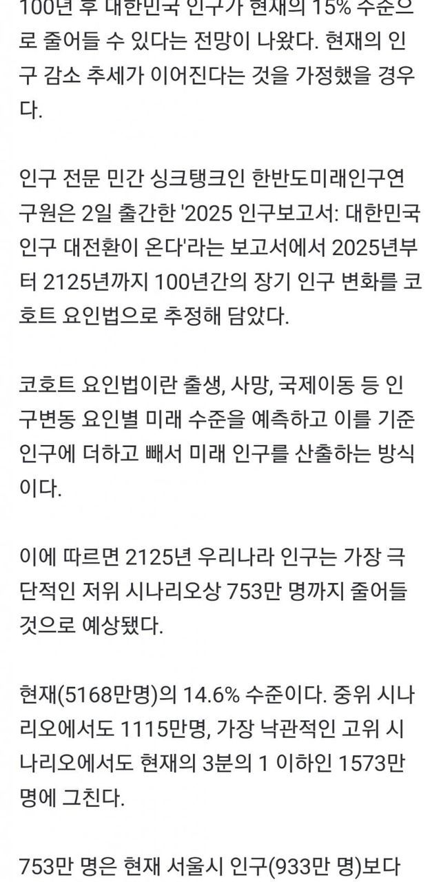 100년후 총인구 750만명 ㅋㅋㅋ