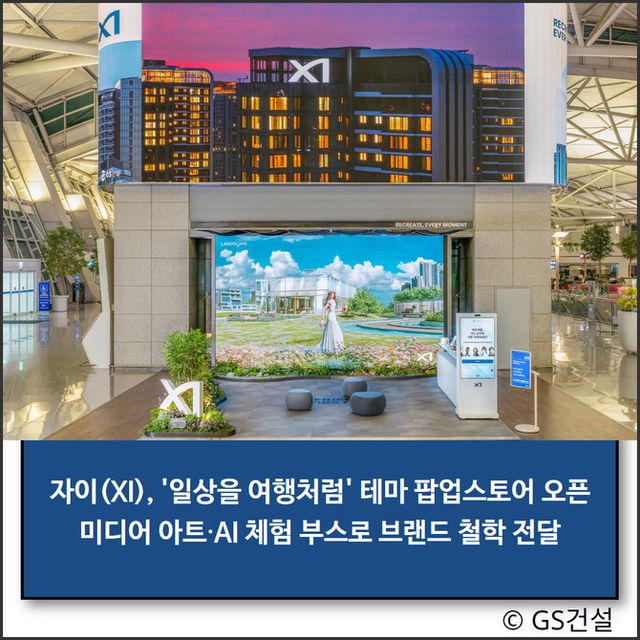 팝업스토어는 '일상을 여행처럼'을 테마로 제1여객터미널 출국장에 마련됐다. 자이의 건축과 조경, 커뮤니티 등 실체 공간에서 영감을 얻은 미디어 아트가 대형 전광판을 통해 상영된다.
