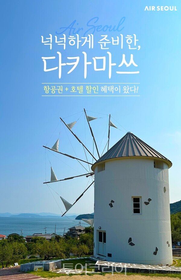 이와 함께 애어서울은 다카마쓰 노선 탑승 고객 대상 ‘위베이스 다카마쓰(WeBase Takamatsu)’호텔과 제휴한 특별 프로모션을 오는 4일까지 진행한다.