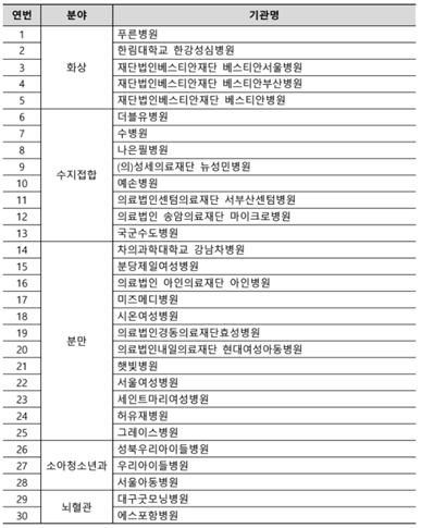 화상, 수지접합, 분만, 소아, 뇌혈관 등 30개 병원 선정