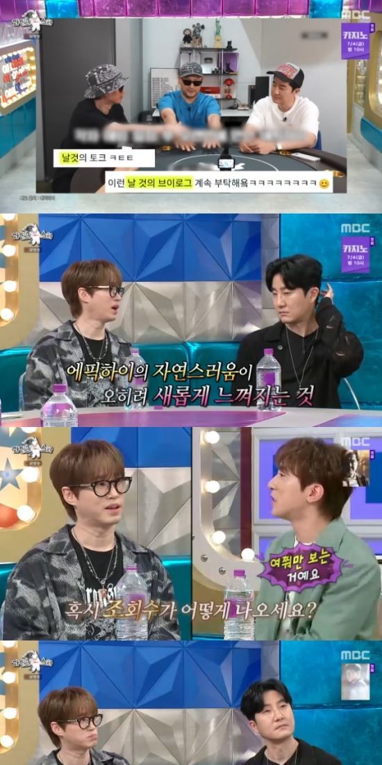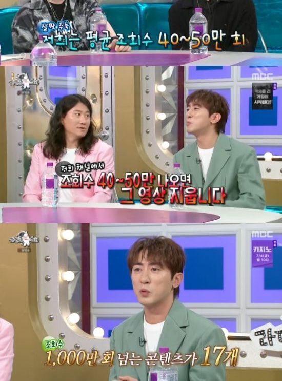 유튜브 얘기에 '342만 유튜버' 김원훈은 "조회수가 얼마나 나오냐"고 말했다. 이에 타블로는 "평균적으로 4~50만회 정도 나온다"고 답했고, 김원훈은 "저희는 조회수가 그렇게 나오면 영상을 지운다. 저희는 평균 250만회가 나온다"고 자랑하며 타블로를 긁어(?) 웃음을 줬다.