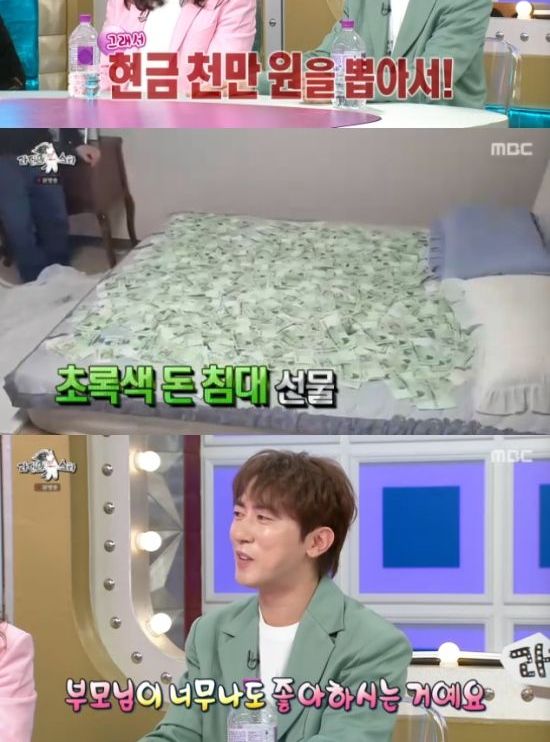 이어 "작년부터 지금까지 사랑을 많이 받고 있다. 잘되면 부모님께 '돈침대'를 선물드리고 싶었다. 그래서 돈 1000만원을 현금으로 뽑아서 침대에 깔아드렸다. 부모님이 너무 좋아하셨다"면서 뿌듯해했다.