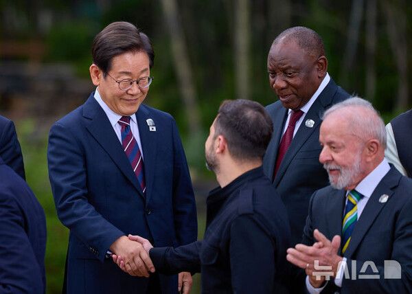 뉴시스 보도에 따르면, 이 대통령은 지난 16~17일 캐나다에서 열린 주요 7개국(G7) 정상회의에 참석하며 정상 외교 데뷔전을 치렀다. 취임 12일 만이다.