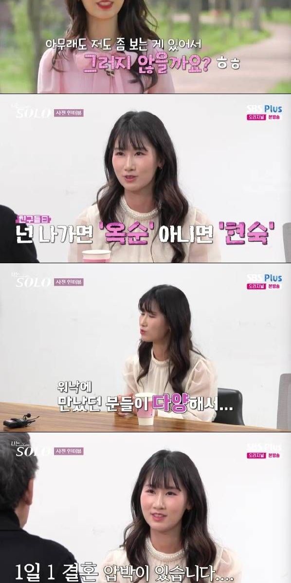 현숙은 "친구들이 '너 나가면 옥순 아니면 현숙이 맞겠다'라고 얘기를 많이 해줬다. 영업, 회계사, 연구개발, 운동선수, 개인 사업가 등 다양하게 만났다"라며 화려한 연애 이력을 들려줬다.