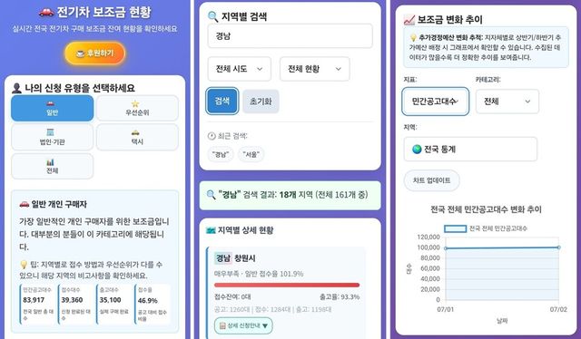 기존에는 각 지자체의 공공 누리집을 일일이 접속해 보조금 잔여 대수를 확인해야 했으나, 이 서비스를 활용하면 전국 지자체의 보조금 현황을 표 형태로 한 화면에서 비교·확인할 수 있어 편의성이 크게 향상된다.