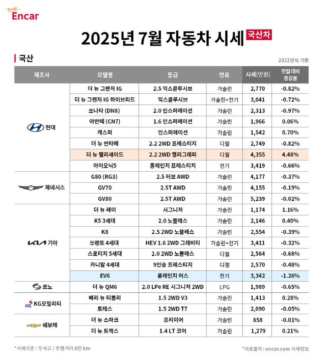 3일 자동차 거래 플랫폼 엔카닷컴은 7월 중고차 시세를 공개했다.