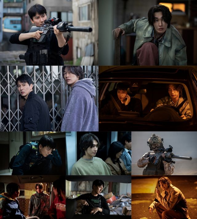 앞서 강렬한 티저 포스터와 예고편이 베일을 벗으며 기대를 높인 가운데, 이날 공개된 캐릭터 스틸은 총기 사건 한가운데에 놓인 이도(김남길 분)와 문백(김영광 분)의 모습을 담아내 호기심을 자극한다. 먼저, 저격총을 든 경찰 이도의 날카로운 눈빛이 시선을 사로잡는다. 과거 분쟁 지역에서 군 스나이퍼로 활약했던 그는 불법 총기 사건을 마주하고 정의를 지키기 위해 다시 총을 드는 인물. 김남길은 “이도는 깊은 상처를 지녔지만, 자신이 받은 상처를 세상에 그대로 되갚지 않으려 애쓰는 사람”이라고 설명하며, “과거에 사로잡히기보다는 미래를 향해 나아가려는 강한 의지를 가진 인물이기도 하다. 절제된 내면과 조용한 단호함이 매력인 인물”이라고 덧붙였다.