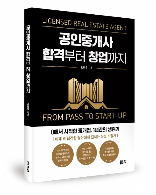 ‘공인중개사 합격부터 창업까지’는 공인중개사 시험 합격 이후 창업까지의 실질적 과정을 안내하는 실무형 입문서다. 저자 김정우 공인중개사는 부동산 중개업과 무관한 피트니스 트레이너 경력을 뒤로하고, 중개업에 도전해 단기간 내 안정적으로 자리를 잡은 실전 경험을 바탕으로 이 책을 집필했다.