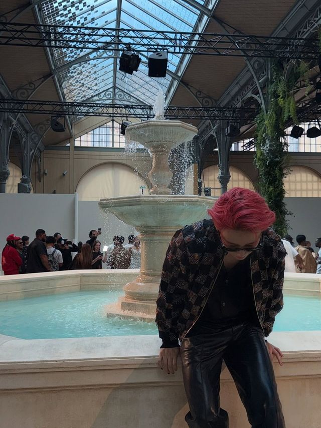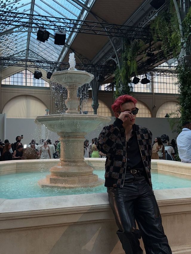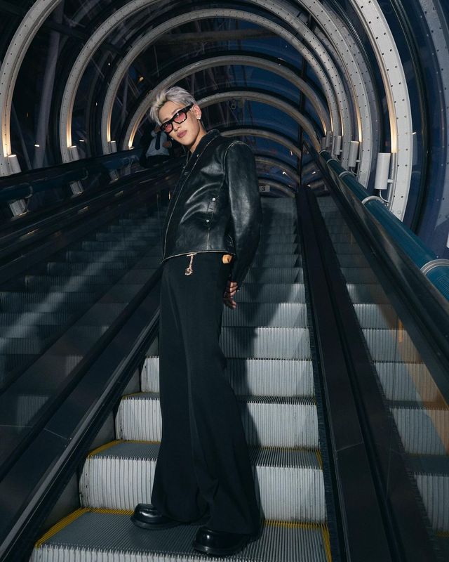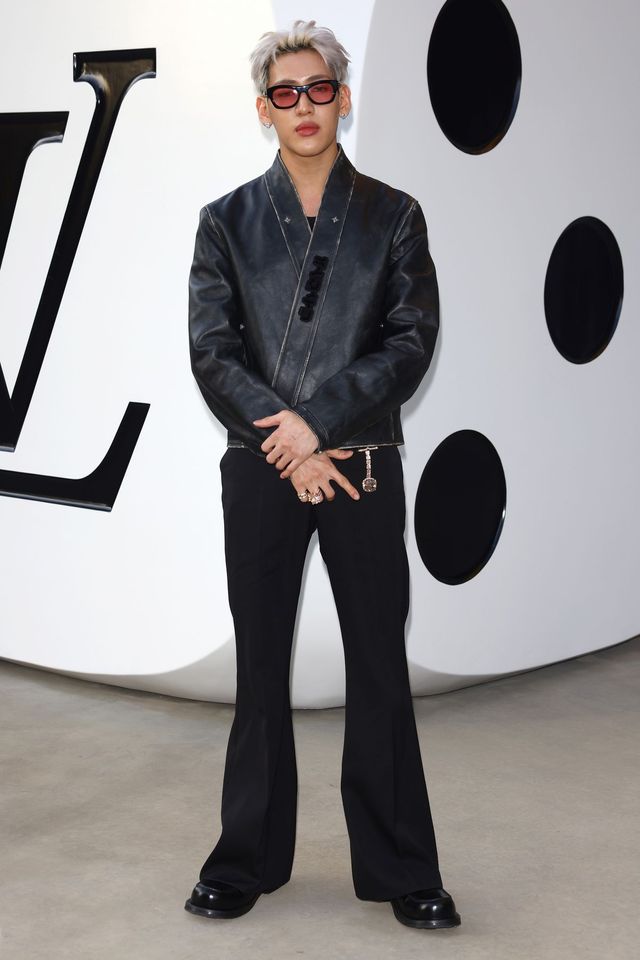 예능감 넘치는 친근한 이미지로 잘 알려진 뱀뱀. 하지만 파리에서는 그런 장난기 가득한 모습 대신, 전혀 다른 분위기의 뱀뱀을 마주할 수 있었다. 한복을 연상시키는 독특한 실루엣의 트렌디한 가죽 재킷에 블랙 플레어 팬츠를 매치하고, 탈색한 머리를 위로 세운 스타일링에 핑크 틴트 선글라스를 더해 진지하게 카메라 앞에 섰다. 예능과 무대 밖을 넘나들며 자신만의 다면적인 매력을 드러내는, 뱀뱀다운 변주였다.