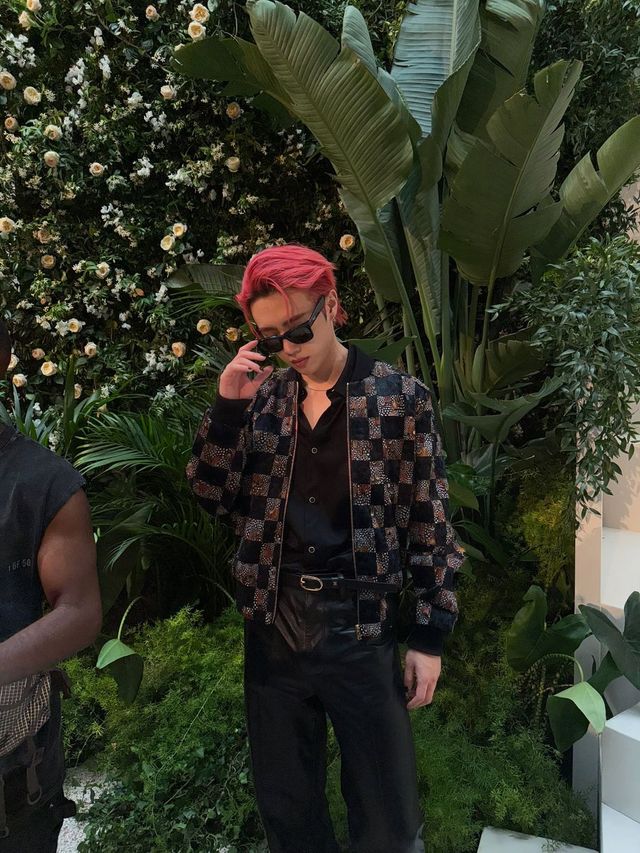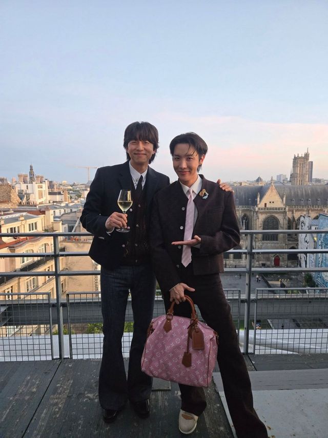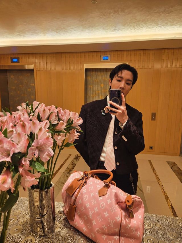 이번 파리 패션위크에서도 제이홉만의 통통 튀는 맑고 밝은 매력을 찾아 볼 수 있었다. 칼라가 없는 버건디 컬러의 루이 비통 수트를 착용해 단정하면서도 감각적인 무드를 연출했고, 클래식한 화이트 셔츠 위에 핑크 넥타이를 매치해 유쾌한 포인트를 더했다. 여기에 동일한 핑크 계열의 루이 비통 가방으로 화사함 한 스푼 추가! 제이홉 특유의 세련된 여유와 리듬감을 전하기 딱 좋은 룩이다.