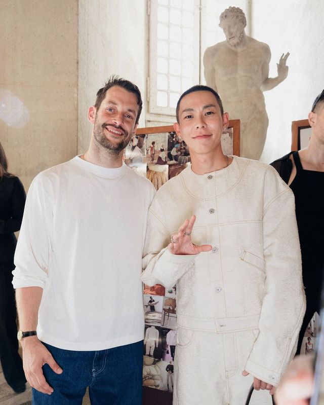 에이티즈 홍중은 올 블랙 스타일임에도 자크뮈스 룩에서 자신만의 매력을 유감없이 드러냈다. 카라 없이 절제된 디자인의 수트를 통해 자크뮈스 특유의 미니멀한 감성을 살리고, 홍중 특유의 느긋하면서도 자연스러운 태도는 룩에 여유로운 무드를 더했다. 모노톤 안에서도 그만의 감각과 개성이 분명하게 드러나는 순간이었다.