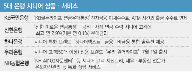 금융권 한 관계자는 “고령 인구가 계속 증가하는 가운데 이들이 받는 공적·사적 연금은 ‘제2의 월급’으로 규모가 계속 커지고 있어 은행으로선 놓칠 수 없는 시장”이라며 “연금과 함께 시니어 고객이 보유한 자산 관리나 역모기론 등 관련 상품·서비스가 계속 이어질 것”이라고 말했다.