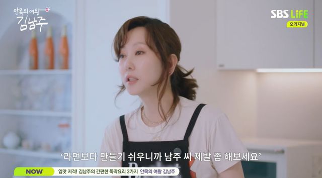 김남주는 "정말 간단해서 감짝 놀라실 거고, 정말 맛있다. 저희 남편은 그것만 먹는다"라고 밝혔다.