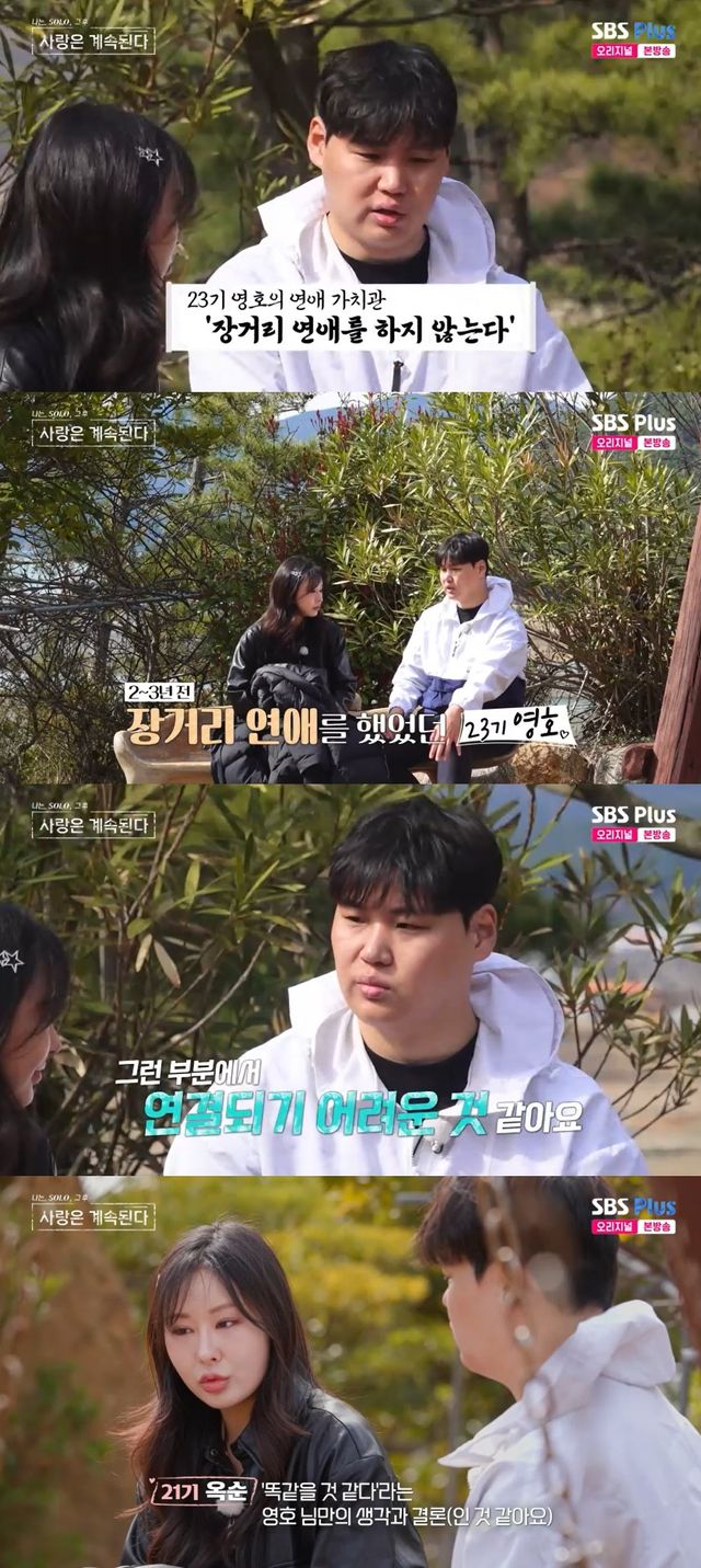 3일 방송된 ENA와 SBS Plus의 '나는 SOLO, 그 후 사랑은 계속된다'(이하 '나솔사계')에서는 최종 결정을 앞두고 23기 영호와 21기 옥순이 깊은 대화를 나눴다.